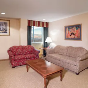 The modern and comfortable rooms at The Circus Circus Reno Hotel Casino At The Row provide a casual and comfortable vantage point with views of the majestic Sierra Nevada Mountains. Each room is equipped with a range of amenities, including a 50-inch HDTV, a coffee machine, and a writing table. Some rooms even have a seating area, allowing guests to relax after a busy day. Fantastic city views or views of the large screen TVs and mini-fridges are available in certain rooms. The property offers over 1.500 rooms and suites, each providing uncompromising comfort. Amenities such as a fitness facility and on-site shopping opportunities are available. Families can find entertainment and fun at the all-new Carnival Midway, featuring free circus shows and party rooms for special occasions. The large casino with card tables and popular slot machines ensures that guests of all ages can enjoy themselves. With a welcoming atmosphere and excellent service, Circus Circus is the leading vacation destination in the heart of Reno.